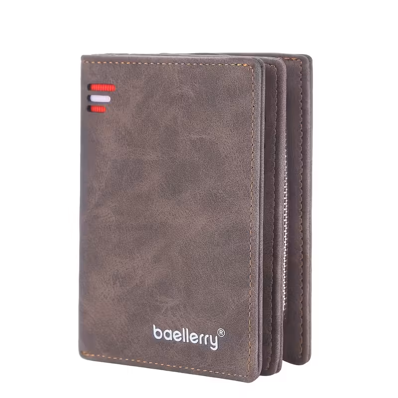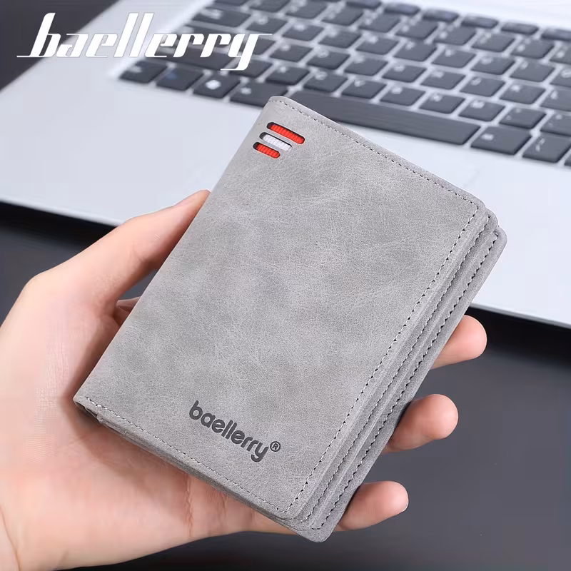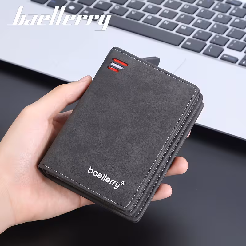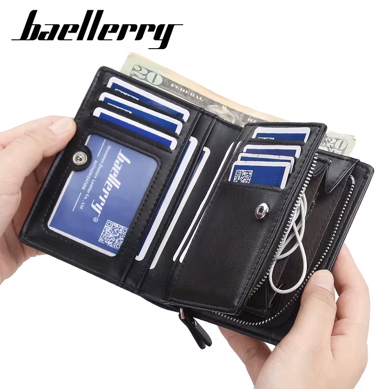 Baellerryのメンズビジネス用ショートウォレット。ヴィンテージ風デザインで、PUレザー素材を使用。多カードスロット搭載で、クレジットカードや銀行カードの整理が簡単。